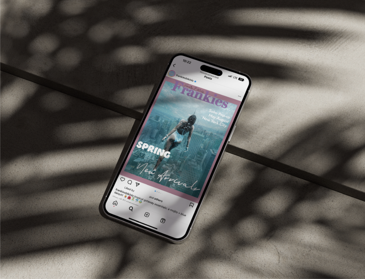In alignment with the brand's essence, I have crafted a targeted advertisement exclusively tailored for their New York City store locations. The design encapsulates the brand's signature aesthetic, capturing the essence of Frankies Bikinis and ensuring a seamless integration with the vibrant and dynamic atmosphere of New York City.
