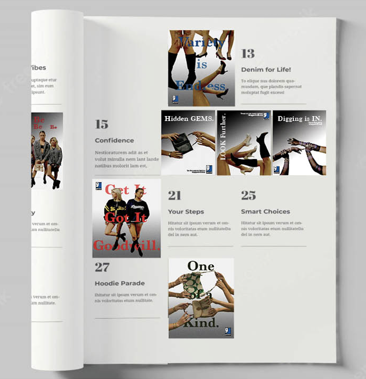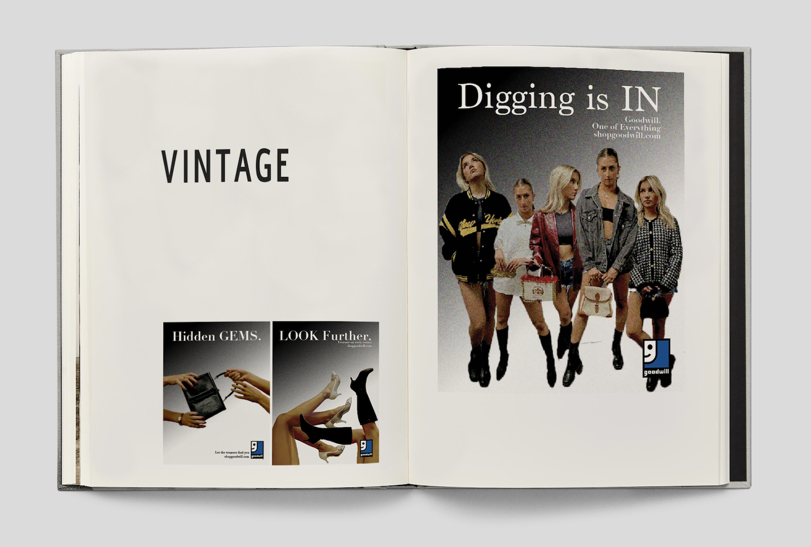 The selection of slogans for the print advertisements was informed by the emotional resonance experienced by individuals upon entering a Goodwill establishment. The abundance of variety within the store, marked by an extensive array of items to peruse and select from, underscores the unique and boundless opportunities for discovery. A key emphasis is placed on the ability to uncover one-of-a-kind pieces, amplifying the distinctive and enriching shopping experience offered by Goodwill.